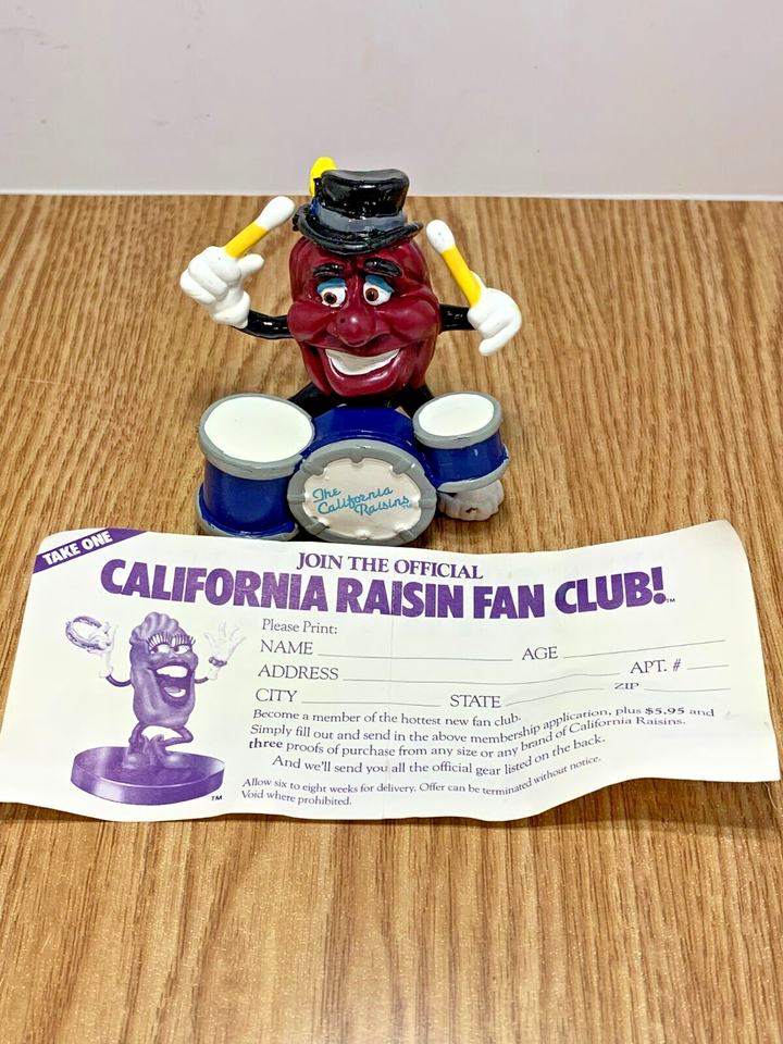 - Vintage 1988 California Raisin Drummer Figure New Old Stock (RARE) [e-09]
