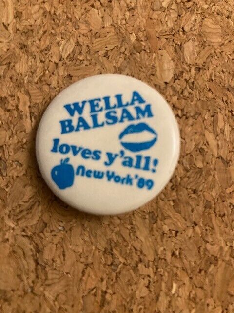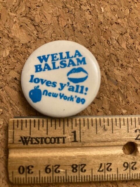 - Vintage 1989 Wella Balsam conditioner hair "Loves y'all" New York Big Apple Pin