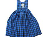 Vintage 1990s Girl 8 Plaid Jumper Flower Embroidery Blue Black Schoolgirl Dress