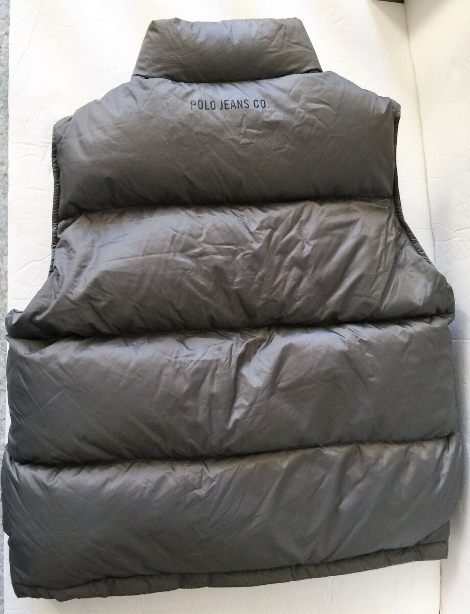 - Vintage 1990s Y2K Polo Jeans Ralph Lauren Grey Gray Down Puffer Vest Small S