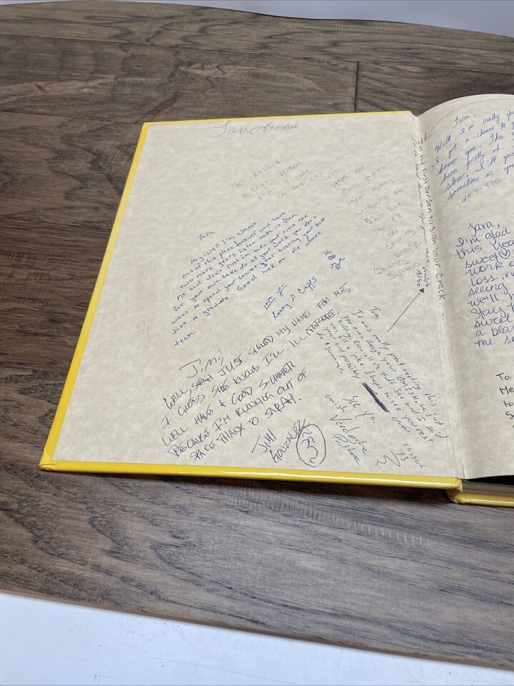 Wear and tear on the cover. Autographed throughout for the person who owned the book. Pages are yellowed. Please see pictures for condition details and measurements.