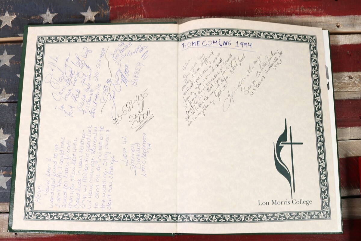 This vintage 1993 Jacksonville Texas Alexandra Lon Morris College yearbook volume 67 is a unique piece of historical memorabilia showcasing the theme of colleges and universities. The fact that it is signed adds a personal touch and makes it even more special for collectors interested in educational memorabilia. Being an original item from 1993 further adds to its value and authenticity, making it a prized addition to any collection focused on teaching and education.