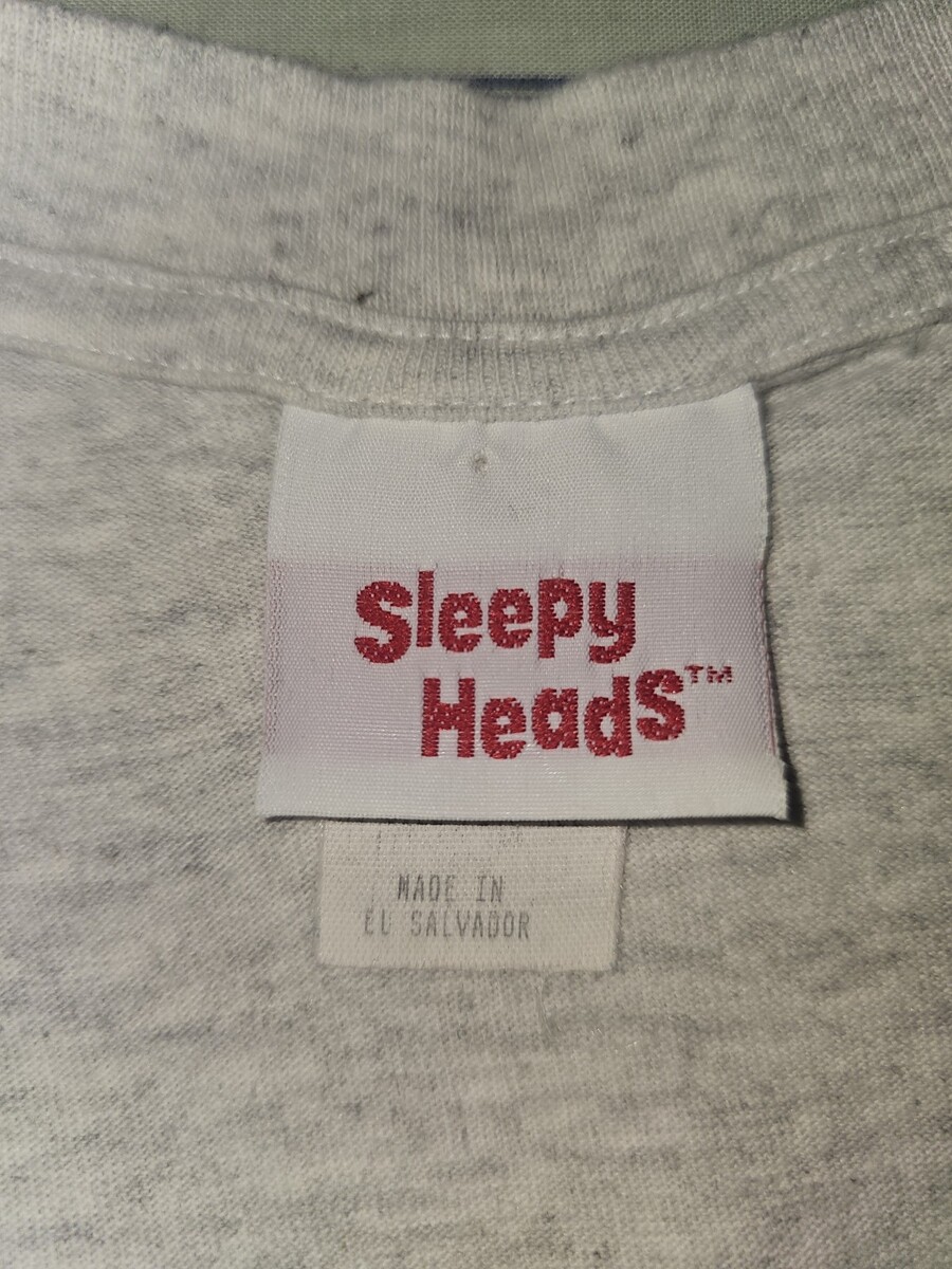 The Vintage 1994 Sleepy Heads Bugs Bunny Looney Tunes Long Night Shirt is a nostalgic and whimsical piece of sleepwear featuring Bugs Bunny from the classic Looney Tunes series. Made of lightweight cotton knit fabric, this gray shirt with a graphic print of Bugs Bunny and the Sleepy Heads logo is perfect for any season. The pullover style with a crew neckline and short sleeves offers a comfortable fit for women of any size. Machine washable for easy care, this vintage shirt brings a touch of 90s cartoon charm to your bedtime wardrobe.