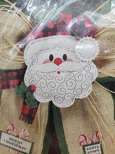 - Vintage 1995 Dimensions Santa Stops Here Burlap Bow Kit Quick & Easy No 61509