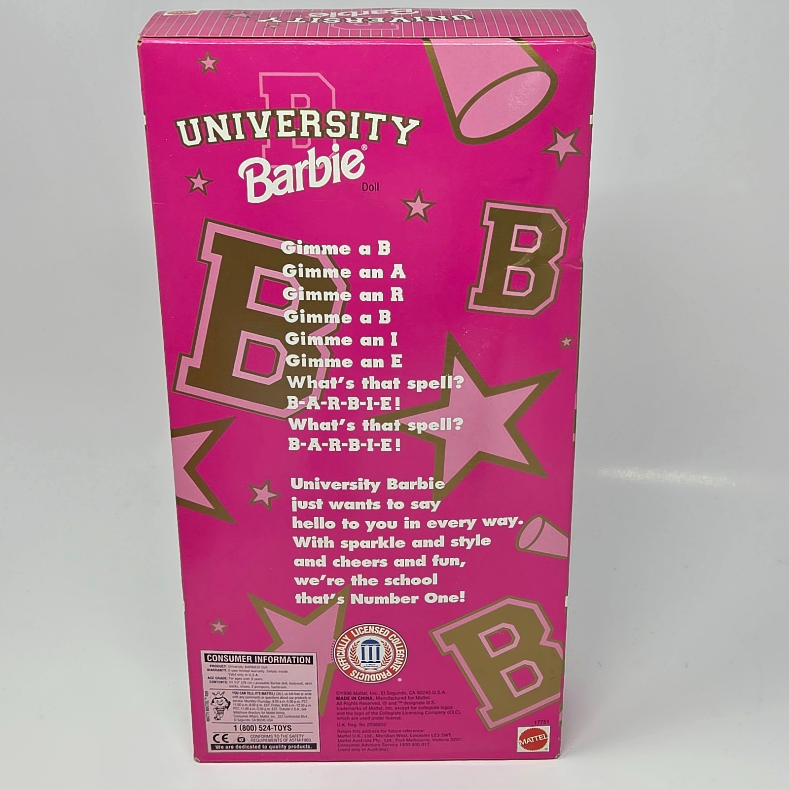 - VINTAGE 1996 UNIVERSITY BARBIE ARIZONA CHEERLEADER DOLL MATTEL NEW N BOX # 17751