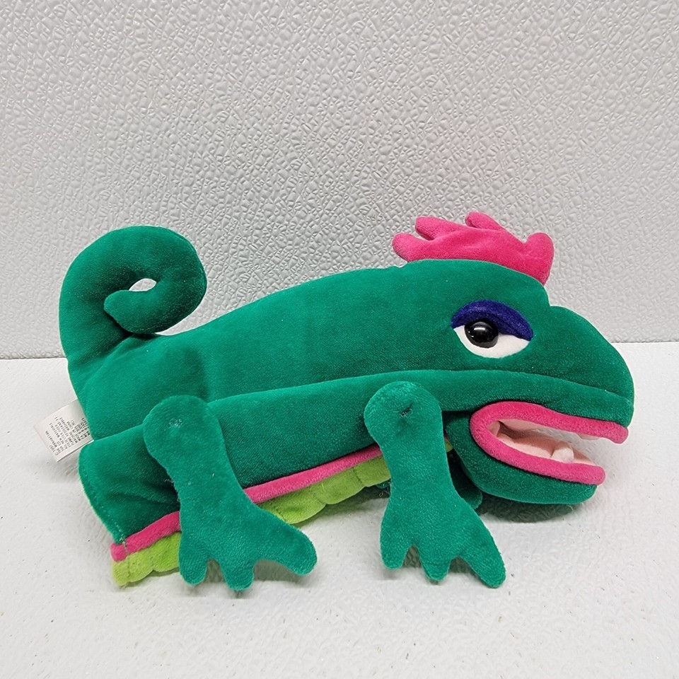 - Vintage 1997 Manhattan Toy Company Iguana Plush Puppet Green Pink Purple