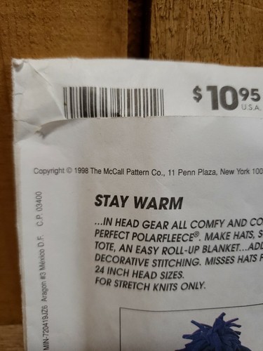 - Vintage 1998 McCalls 9551 Fashion Accs Pattern Hats/Scarves/Tote/Roll-up Blanket