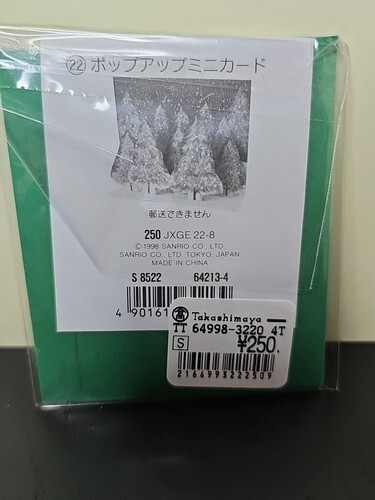 This vintage Sanrio Pop Up 3D Mini Christmas Card Package Tag Set is a must-have for any fan of the beloved Brand/Company. The set features some form of a christmas holiday theme / scene and is made from high-quality paper. It was manufactured in 1997 and released in 1998, and is a rare find for collectors of Sanrio.