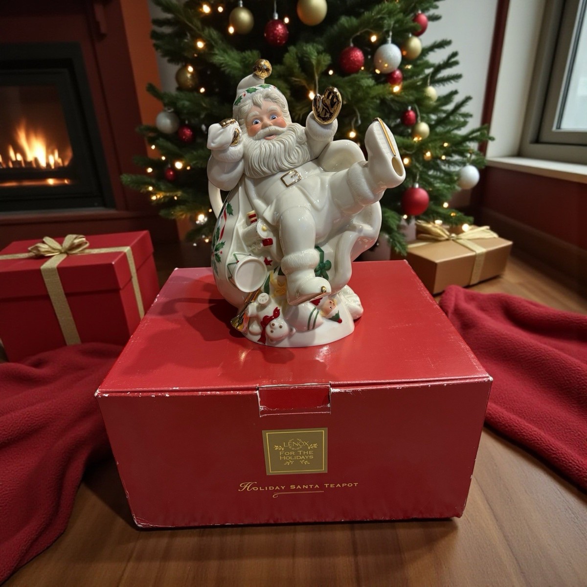 - Vintage 1999 LENOX FOR THE HOLIDAYS SANTA COLLECTION TEAPOT christmas w/box