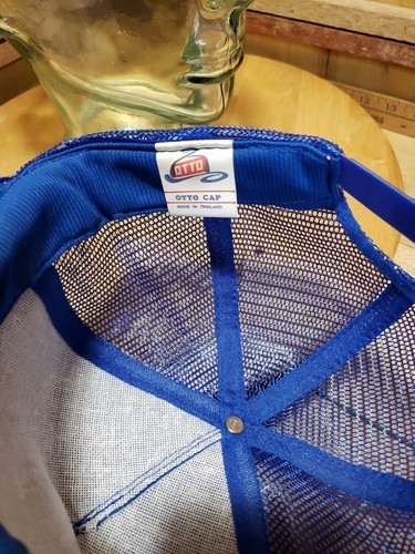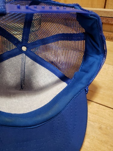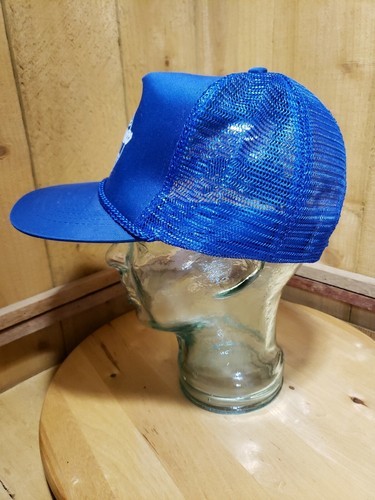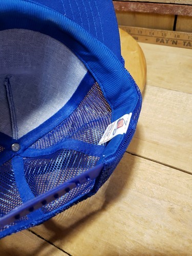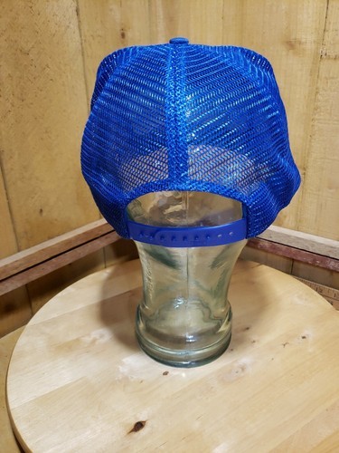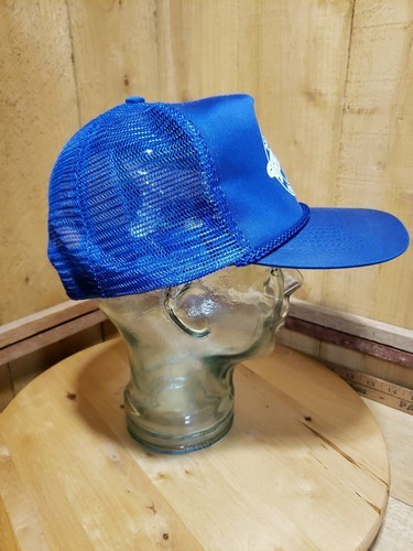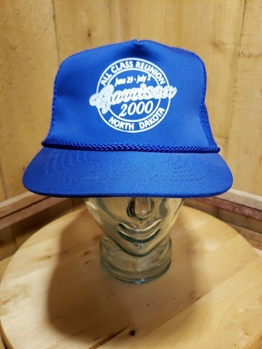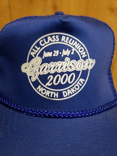 - Vintage 2000 Garrison North Dakota Blue Rope Front Mesh Snapback Trucker Hat Cap