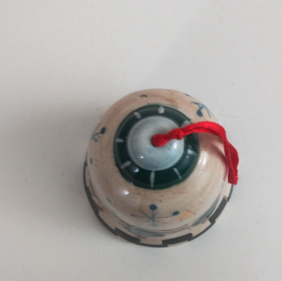This is for a Vintage 2001 Homco Folk Art Cabin With Snowman 3.5" Christmas Bell Ornament.