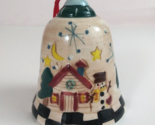 Vintage 2001 Homco Folk Art Cabin With Snowman 3.5" Christmas Bell Ornament