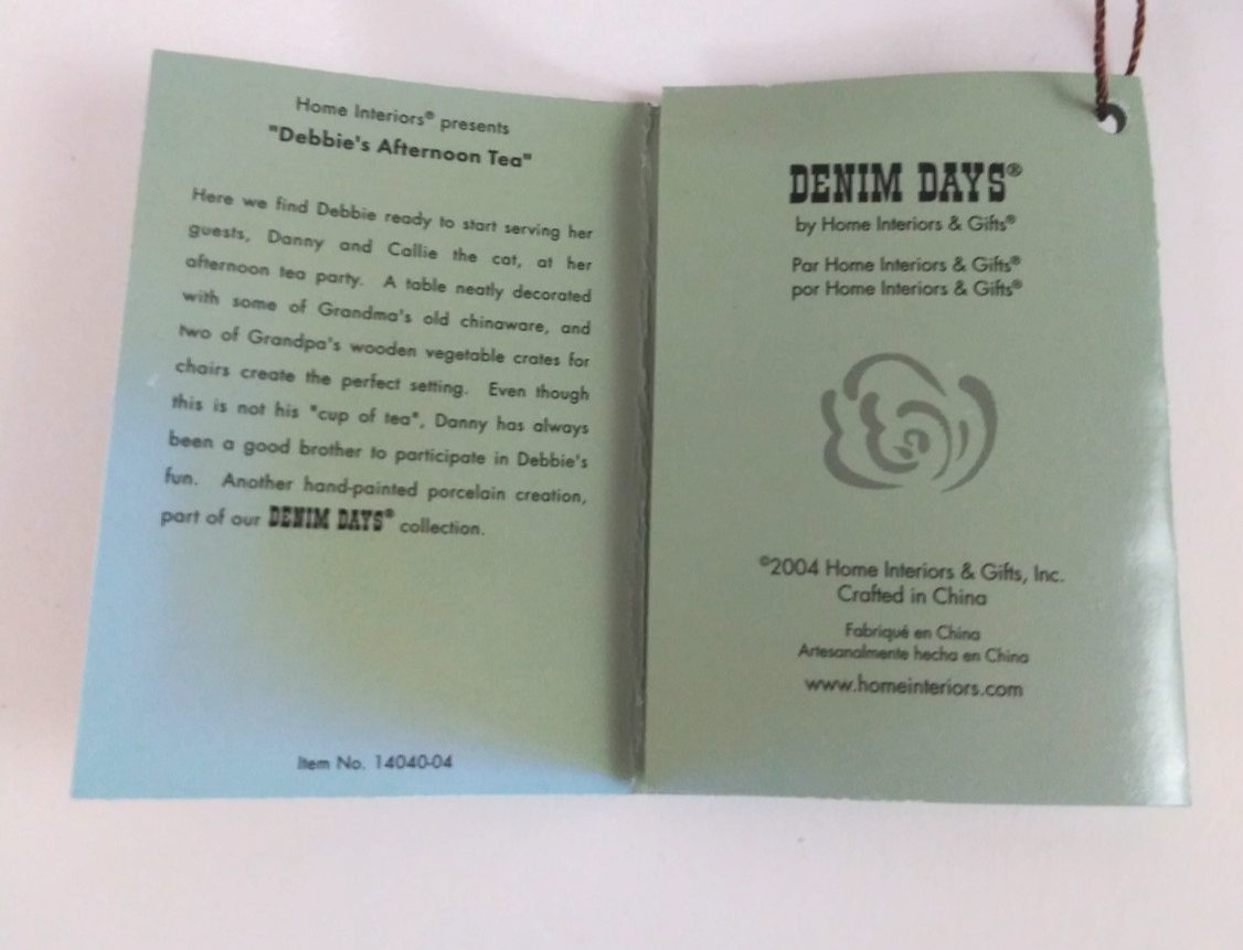 This is for a Vintage 2004 Homco Denim Days Debbie's Afternoon Tea Figurine #14040-04.