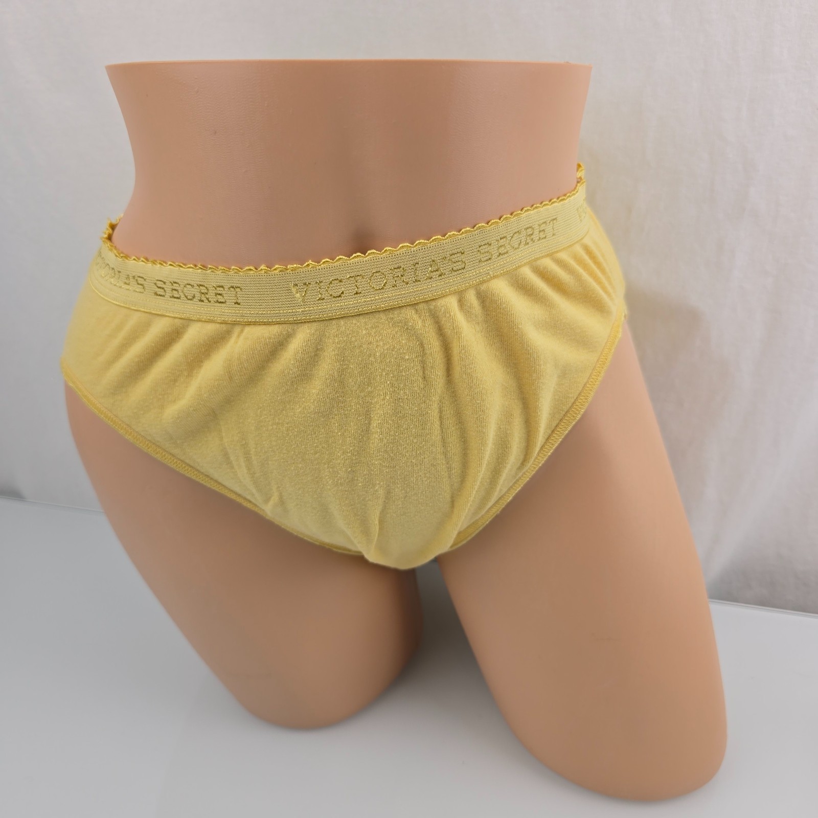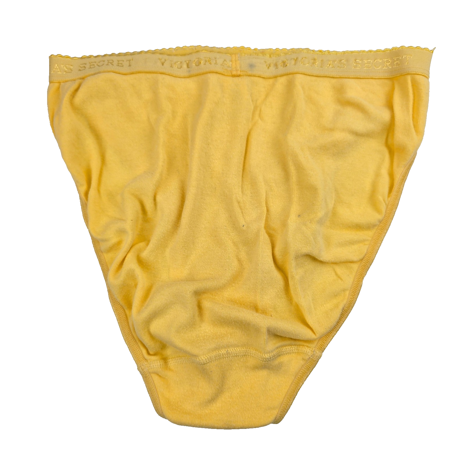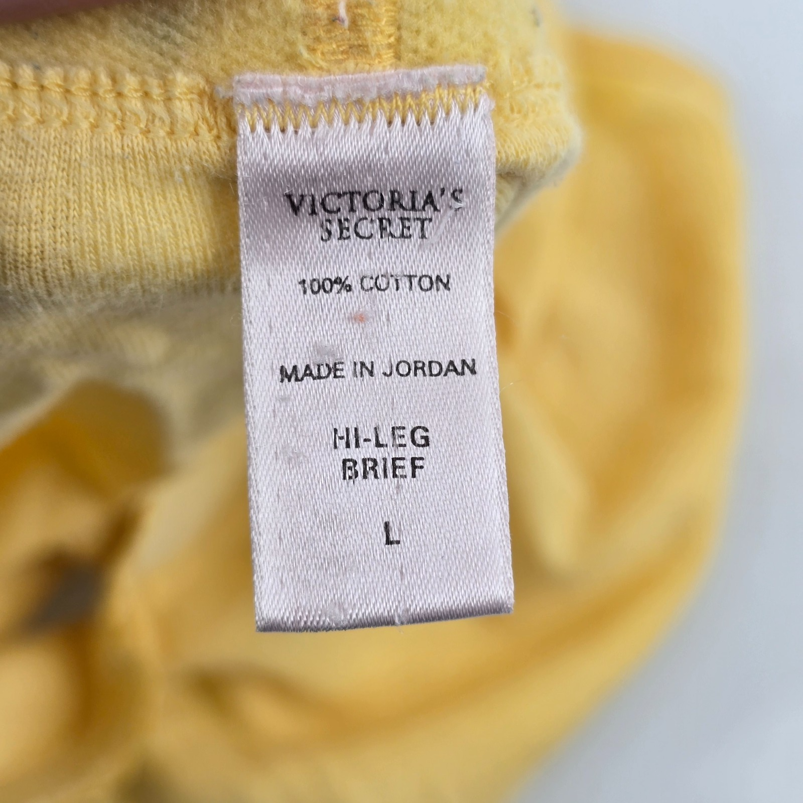 - Vintage 2005 Victorias Secret hi leg brief panty Yellow 100% cotton logo L READ