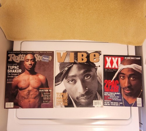 Excellent Condition Vintage Tupac Shakur 3 Magazine LOT: Dated 10/31/1996 Rolling Stones Issue #746 Tribute issue / October 2002 XXL Tribute issue / November 1996 VIBE Tribute Issue.