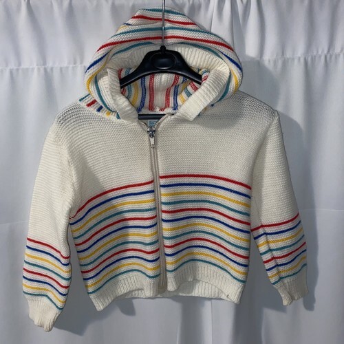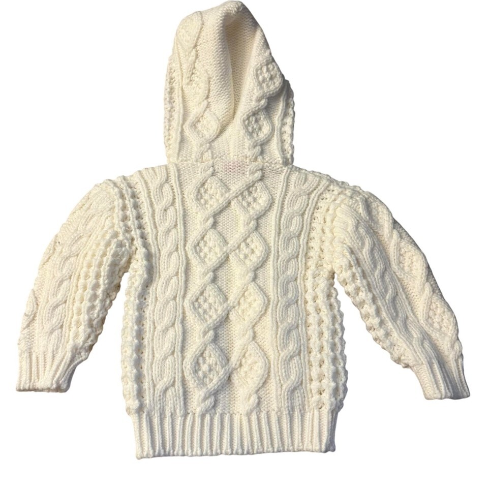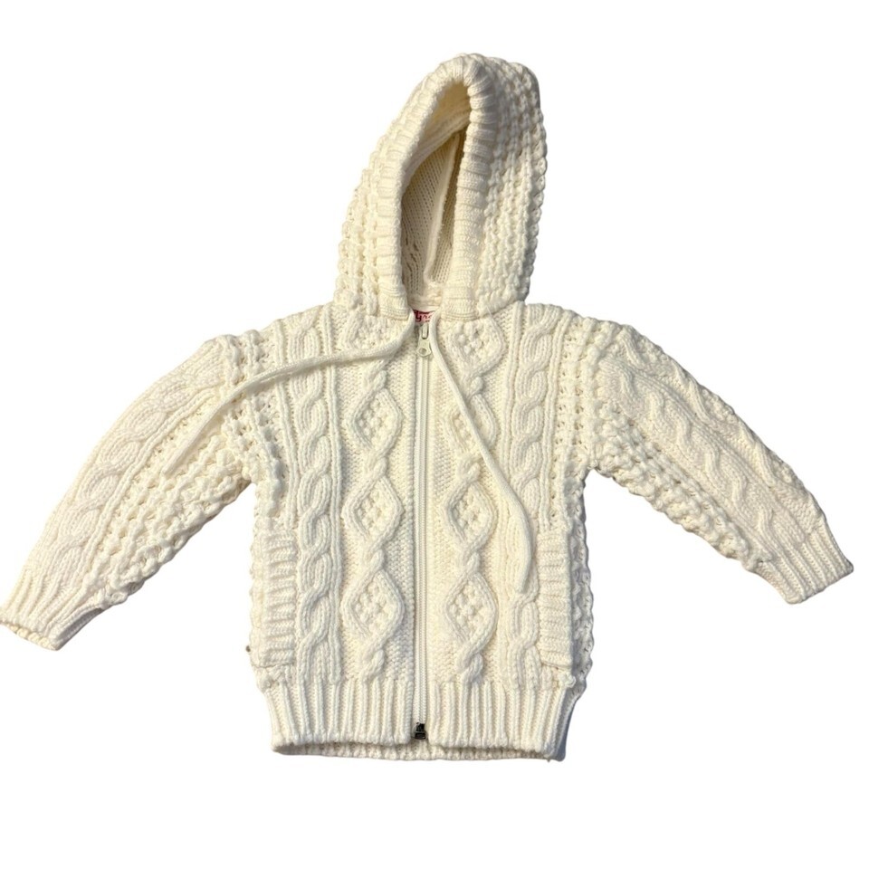 - Vintage 2T Toddler Cable Knit Zipper Hoodie Sweater White 100% Acrylic