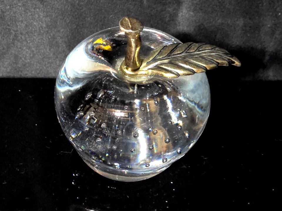 - Vintage 3” Murano Style Silvestri Mouth Blown Crystal Glass Apple Paperweight