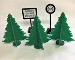 Vintage 3 Plastic Christmas Trees 2 Plastic Signs RR Danger Village Train Layout