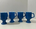 - Vintage 4 Blue Textured Milk Glass Footed Mug Cup Anchor Hocking(?)