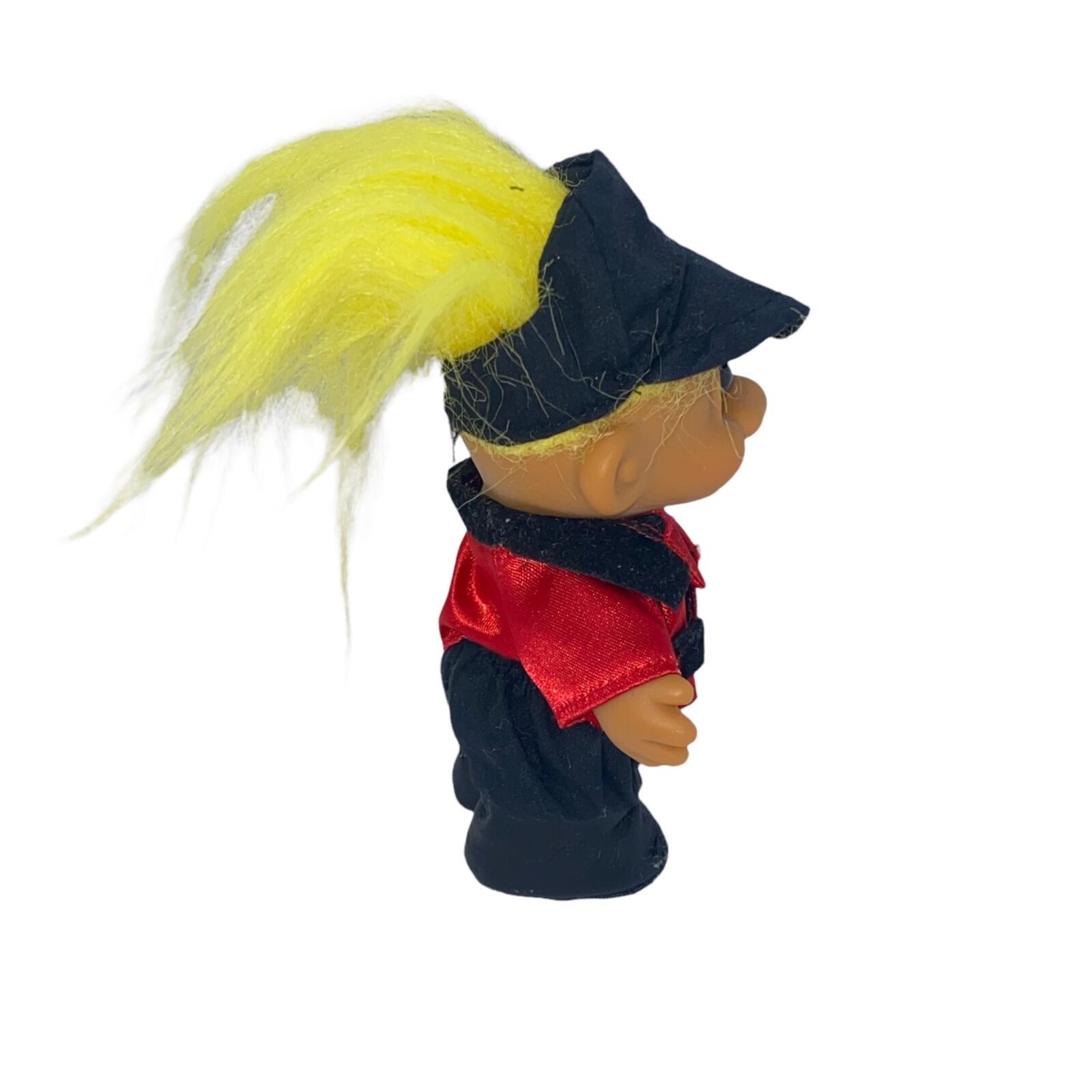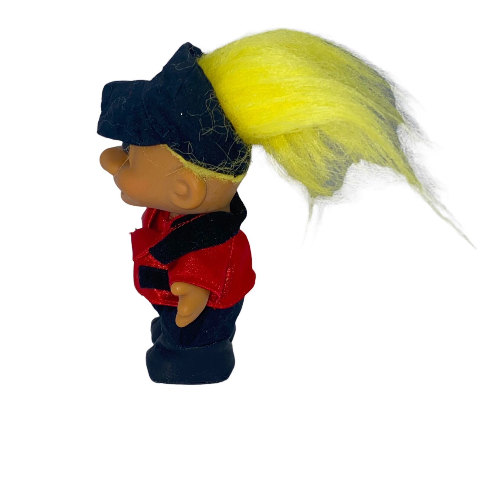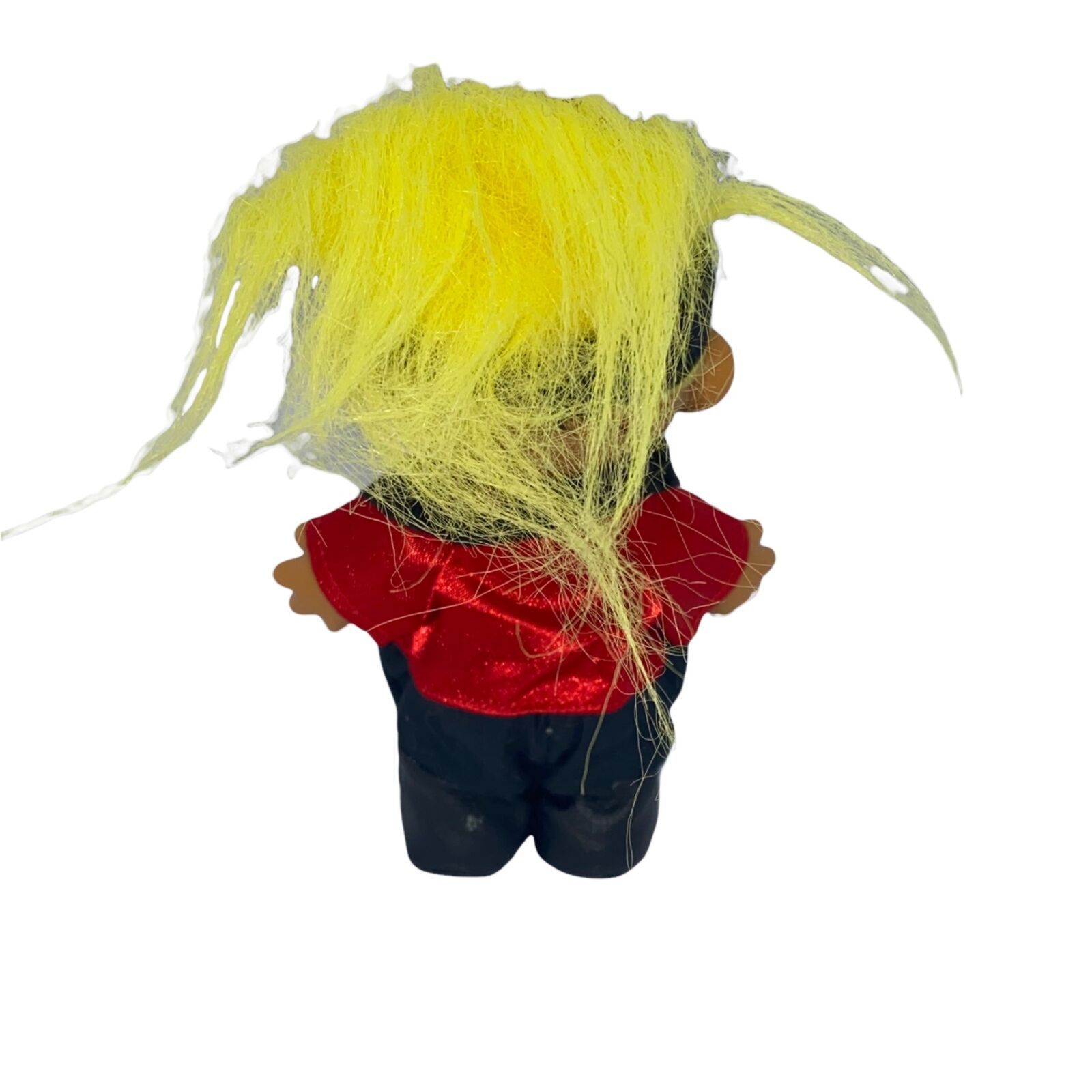 - Vintage 4" Russ Troll Yellow Hair with Red/Black Outfit