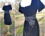 - Vintage 50/60s Sue Brett Junior black velvet wiggle dress satin bow belt W23-24"