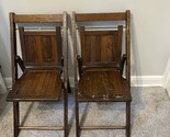 This vintage 50's children's sturdy wooden slotted folding chair is a solid brown color, fully assembled, and made of wood. It features a 1950s style with a foldable design, making it easy to store and transport. The chair measures 12 inches in length, 24 inches in backrest height, and 24 inches in item height, suitable for indoor use in any room. A set of 2 chairs is included, perfect for unisex kids and adding a unique touch to any space with its antique charm.