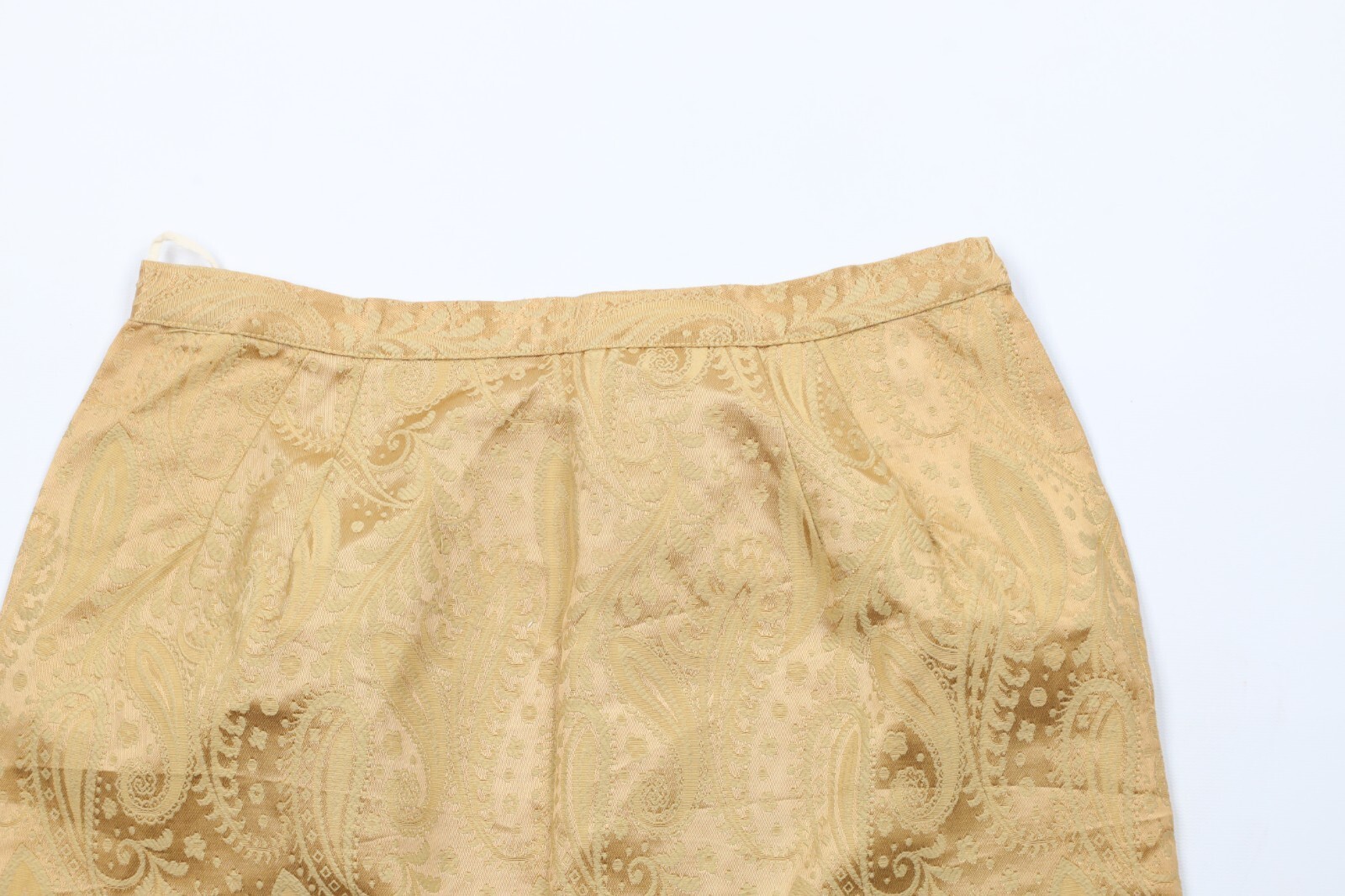 - Vintage 50s 60s Rockabilly Womens 27 Silk Paisley Jacquard Pencil Skirt Gold