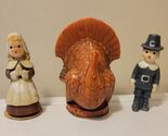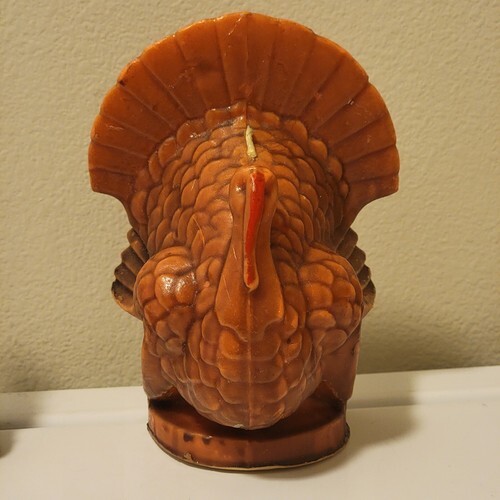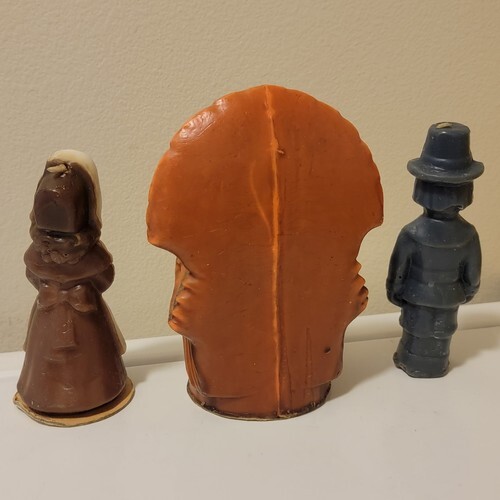 - Vintage 50s Gurley 5 1/2" Pilgrims + 6 1/2" Turkey Candle Set Unburned