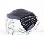 - Vintage 50s Womens Size 23 Felt Fishnet Lace Beaded Calot Hat Cap Blue USA