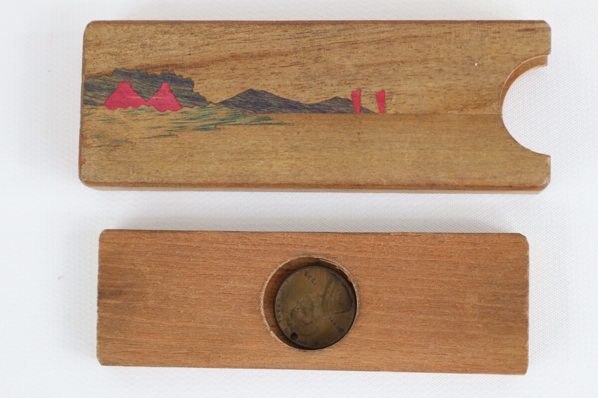 - Vintage 50s World War II Occupied Japan Wood Disappearing Coin Magic Box Trick