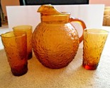 - Vintage 6" Orange Round Pitcher with handle and 3-8 oz. Glasses