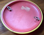 Vintage 60s 25” Round Fiberglass Snow Saucer Disc Sled Red Yellow Trim Handles