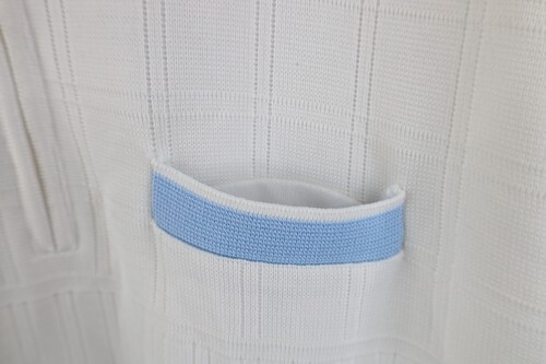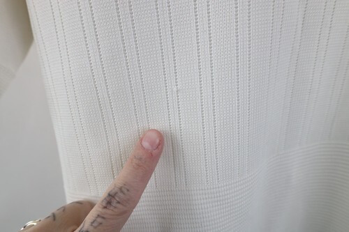 Fabric pull front right. Zipper tarnished. Sheer fabric. Yellowed