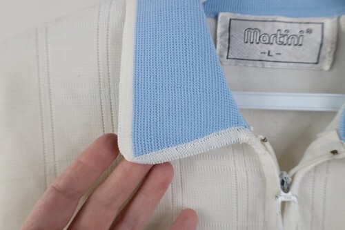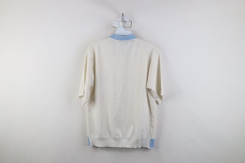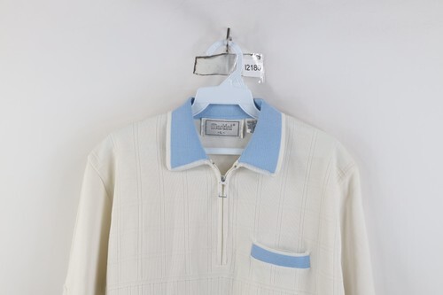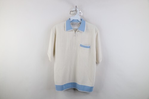 - Vintage 60s 70s Rockabilly Mens Large Striped Knit Half Zip Pullover Polo Shirt