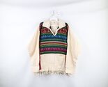 Vintage 60s Boho Chic Womens Large Fringed Striped Tapestry Tunic Shirt Rainbow