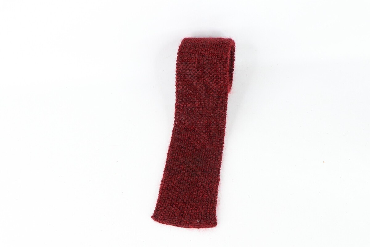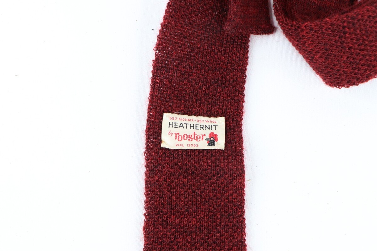 - Vintage 60s Mohair Wool Knit Skinny Square Neck Tie Dress Tie Heathered Red