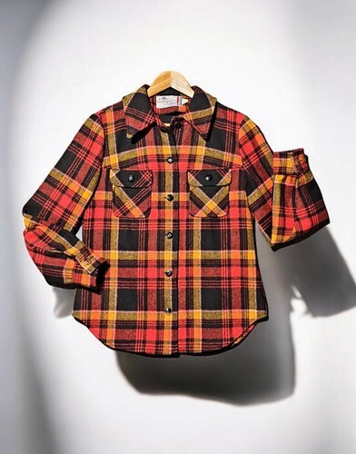 - Vintage 60s Pendleton Knockabouts Orange Plaid Virgin Wool Jacket Womens Size 14