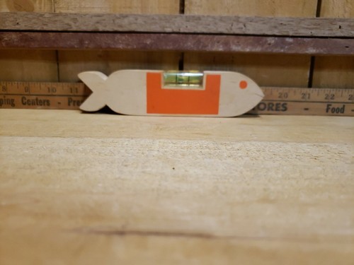This Rare Swiss Fish Shaped Wooden Level is in Excellent Condition, with the box--well used.