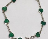 Vintage 7" Sterling Silver 925 Bracelet Featuring Hearts With Inlay Green Jade