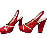 Vintage 70's Chunky Platform Shoes Womens 5 Red/White Slingback Hippie Lotus UK
