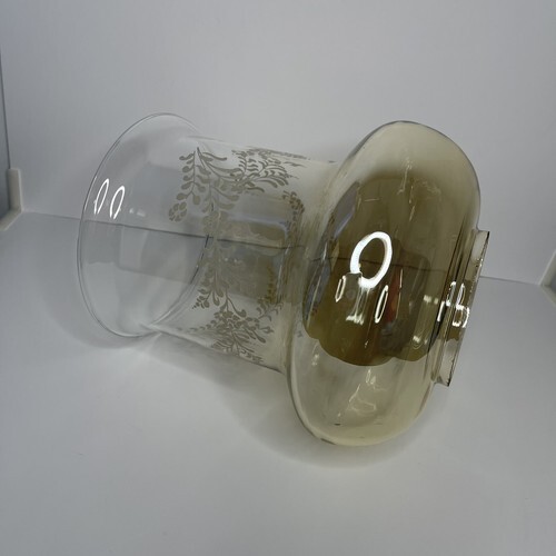 - Vintage 70's Hurricane Lamp Large Shade Globe White Floral Iridescent Glass