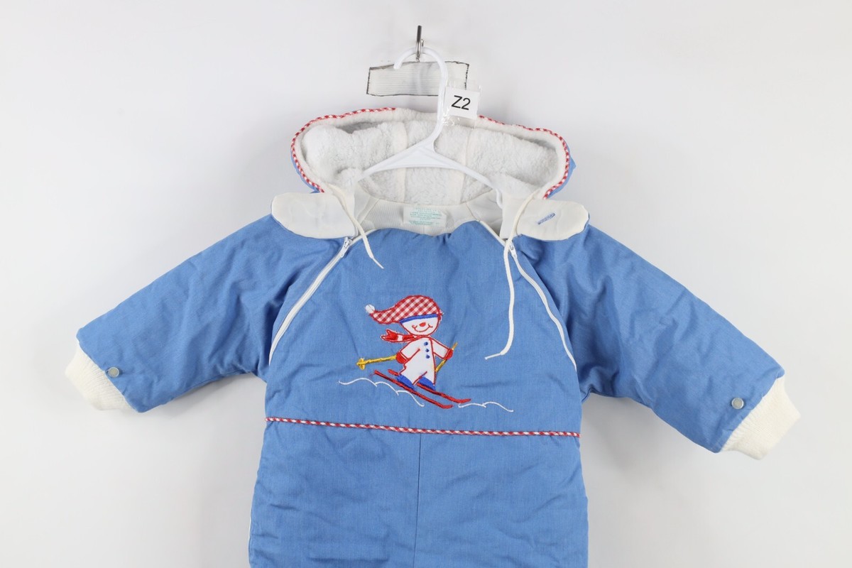 - Vintage 70s 80s Baby Toddler Size 24M Snowman Hooded Quilted Snowsuit Jacket