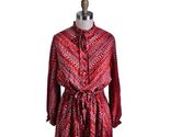 Vintage 70s Marie for Francis X Red Shirt Dress Bubble Print Neck Tie Bow L/XL