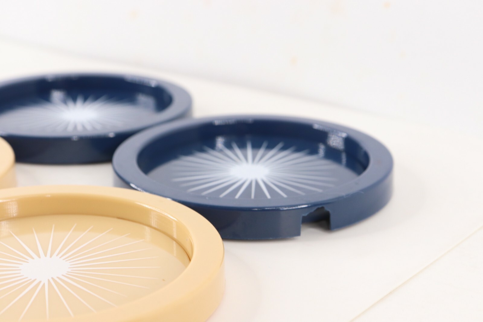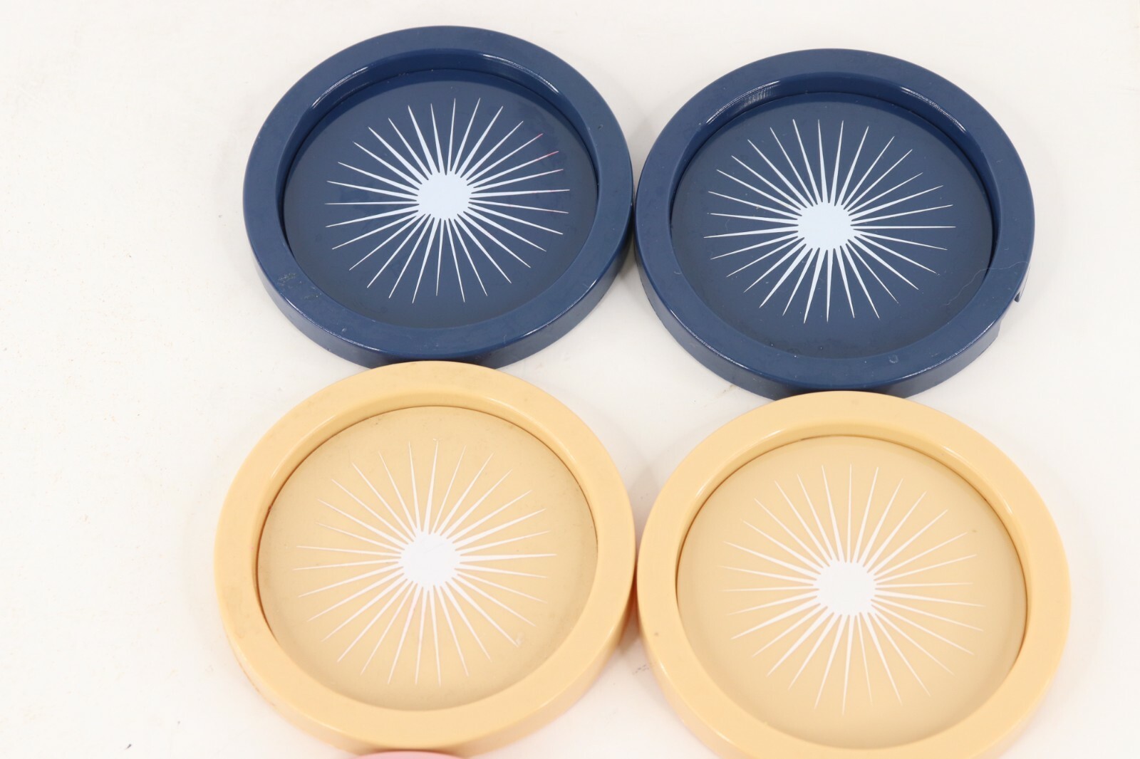 - Vintage 70s Mid Century Modern MCM Set of 6 Sunburst Cup Coasters Discs USA
