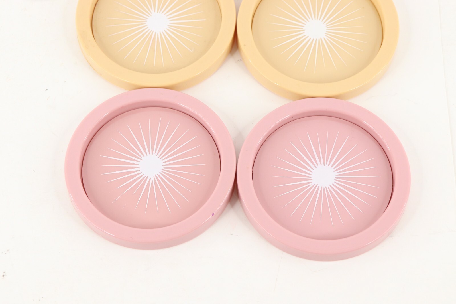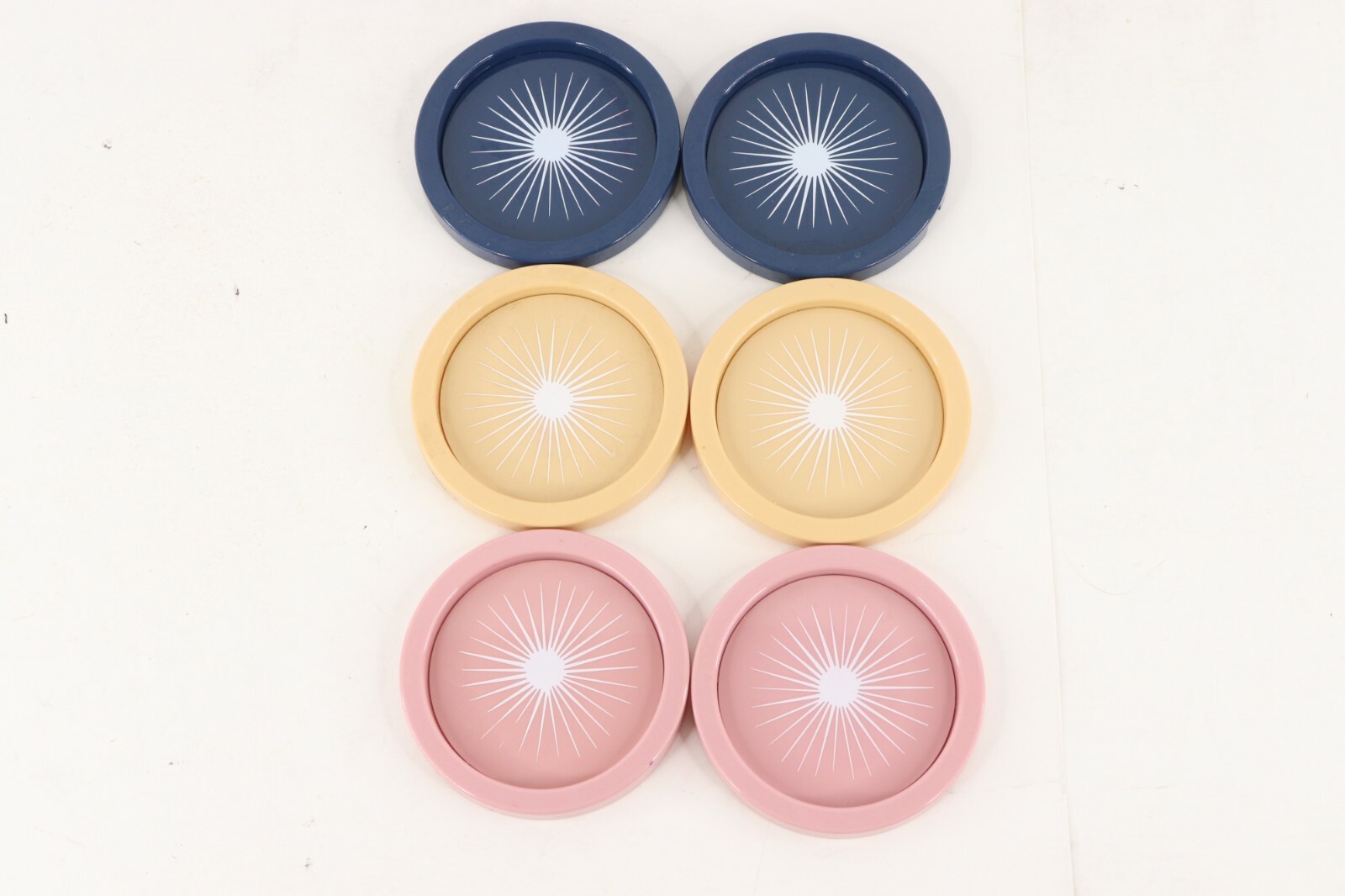 Vintage 70s Mid Century Modern MCM Set of 6 Sunburst Cup Coasters Discs USA