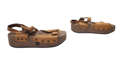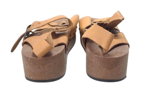 Material: Leather upper, wood-like platform sole
