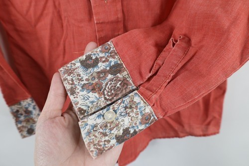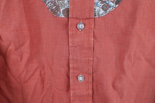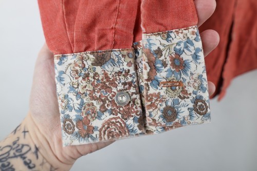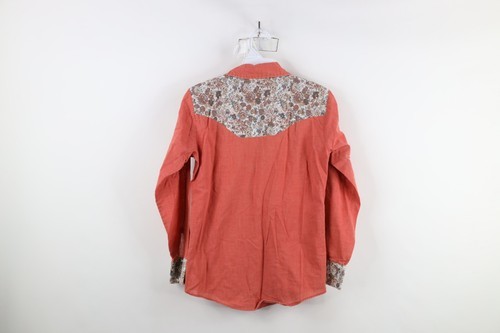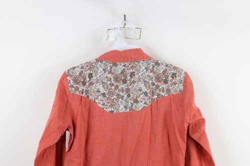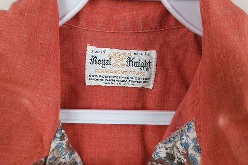 - Vintage 70s Rockabilly Boys 14 Faded Chambray Western Flower Button Shirt USA