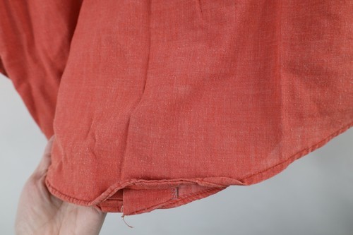 Loose threads, blemishes back. Collar blemished. Thread bare/discoloring collar, cuffs, front middle along buttons. Loose threads buttons. Color faded. Pilling. Made in USA