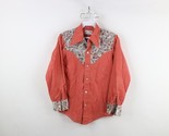Vintage 70s Rockabilly Boys 14 Faded Chambray Western Flower Button Shirt USA