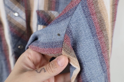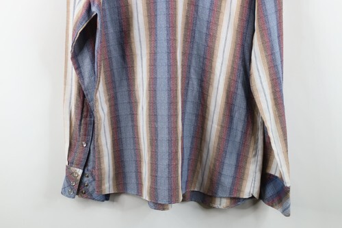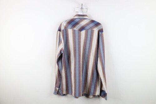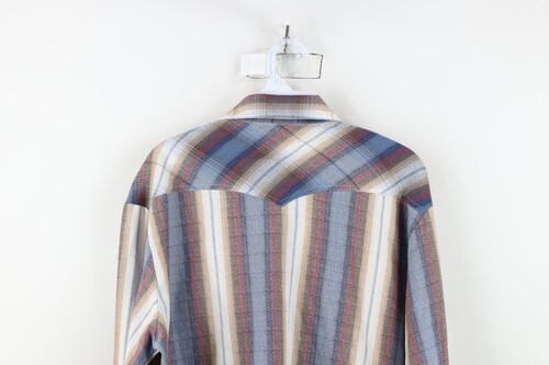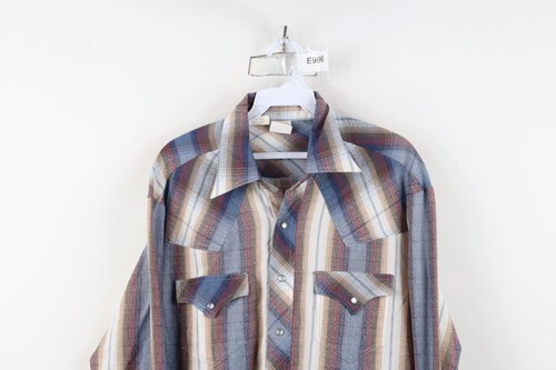 - Vintage 70s Rockabilly Mens Large Rainbow Plaid Western Rodeo Snap Button Shirt
